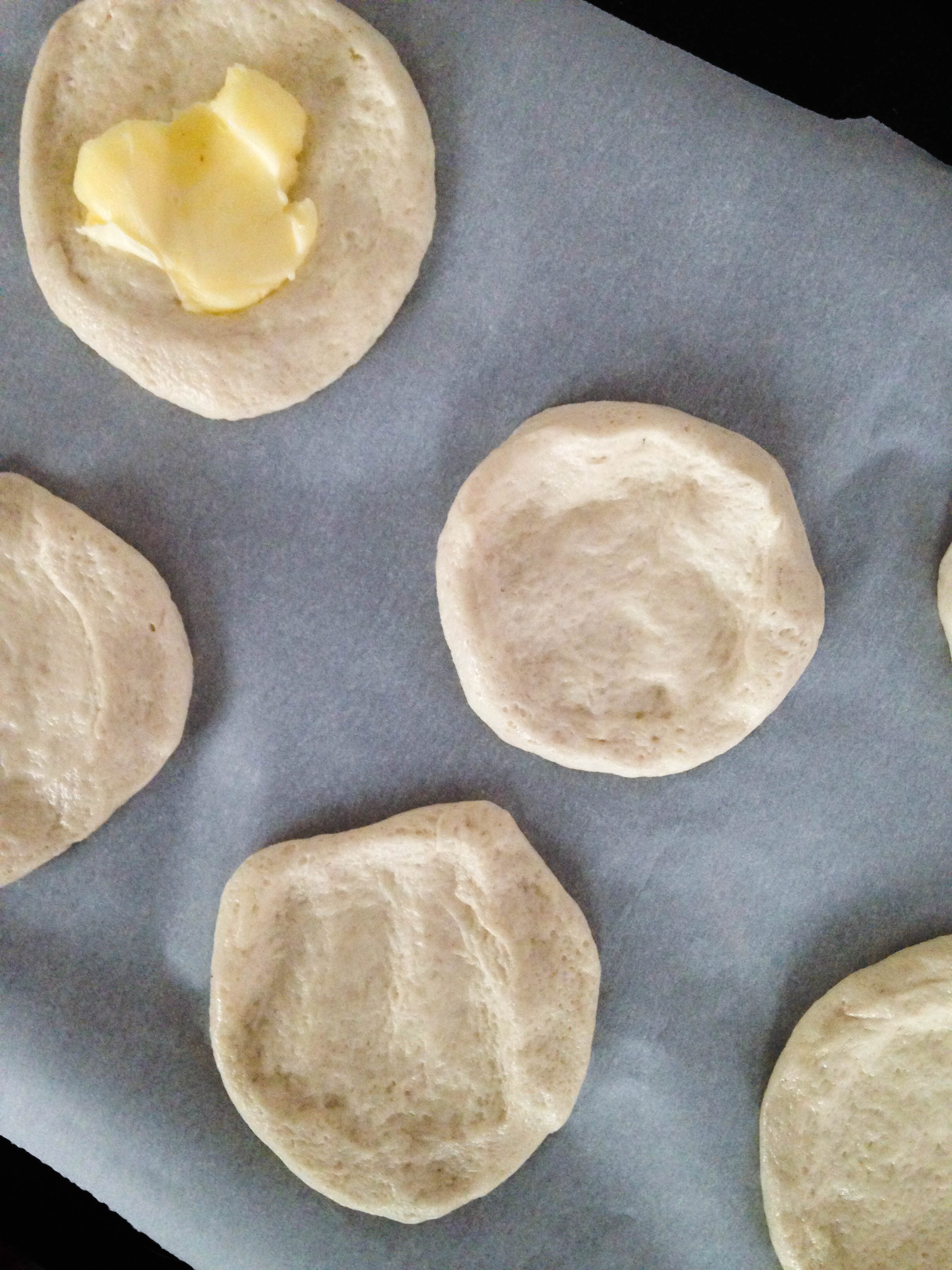 - Lay out the biscuits and flatten each one with your fingers or a rolling pin. Try to get them as flat as possible, they do start to puff back up a little bit.